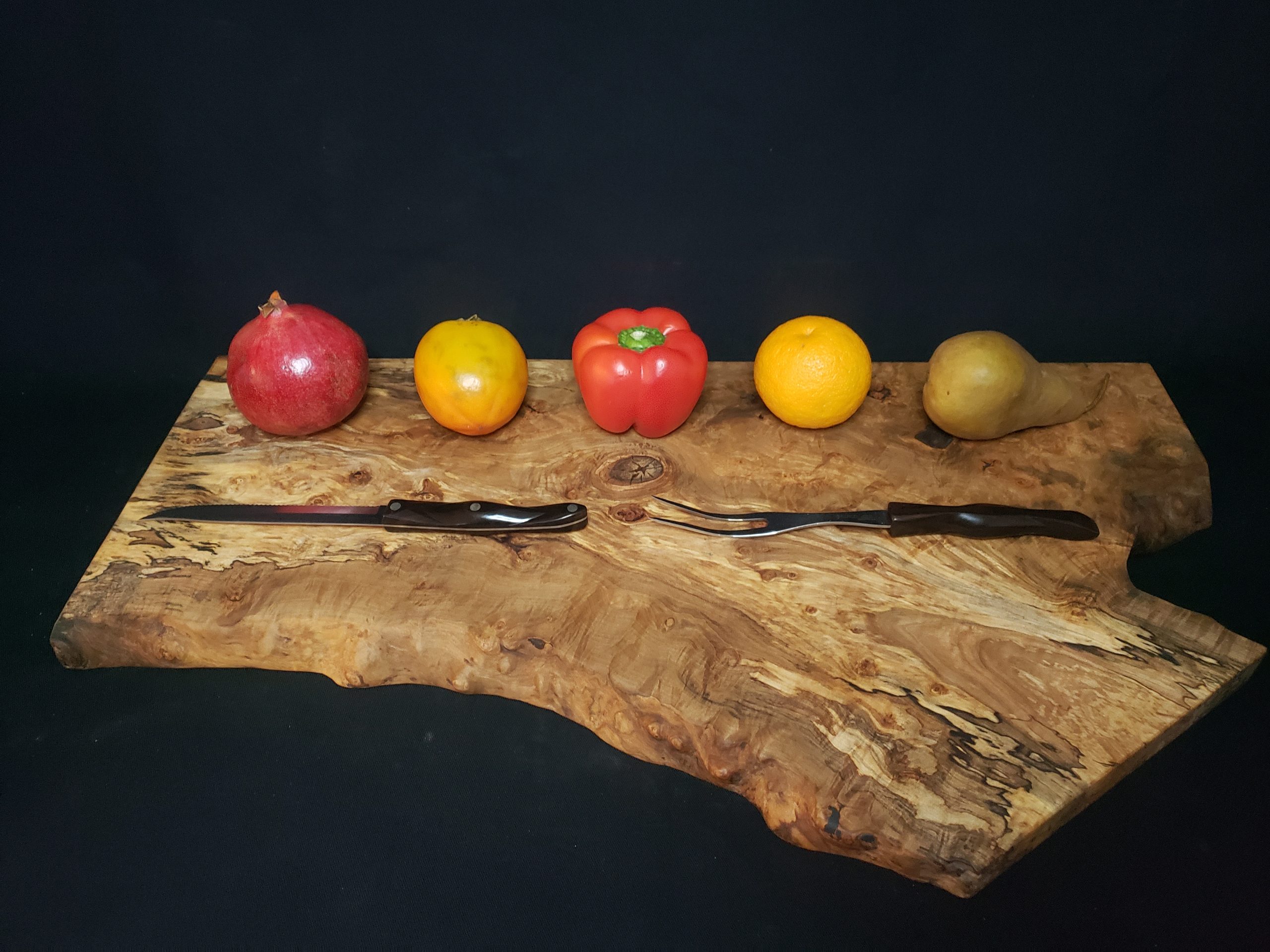 Ontario grown face grain cutting/serving board made from Highly Figured Spalted Maple.