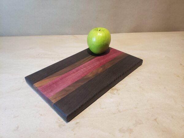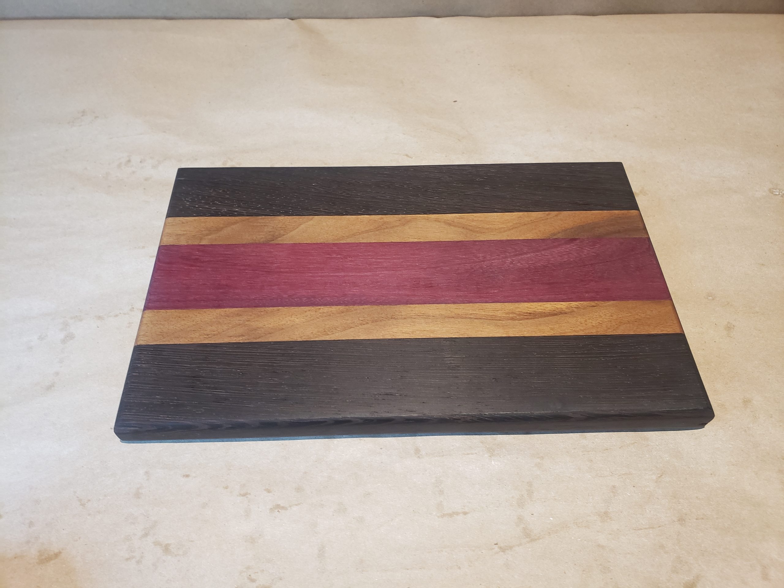 Hardwood face grain cutting board made from Wenge, Walnut & Purple Heart.
