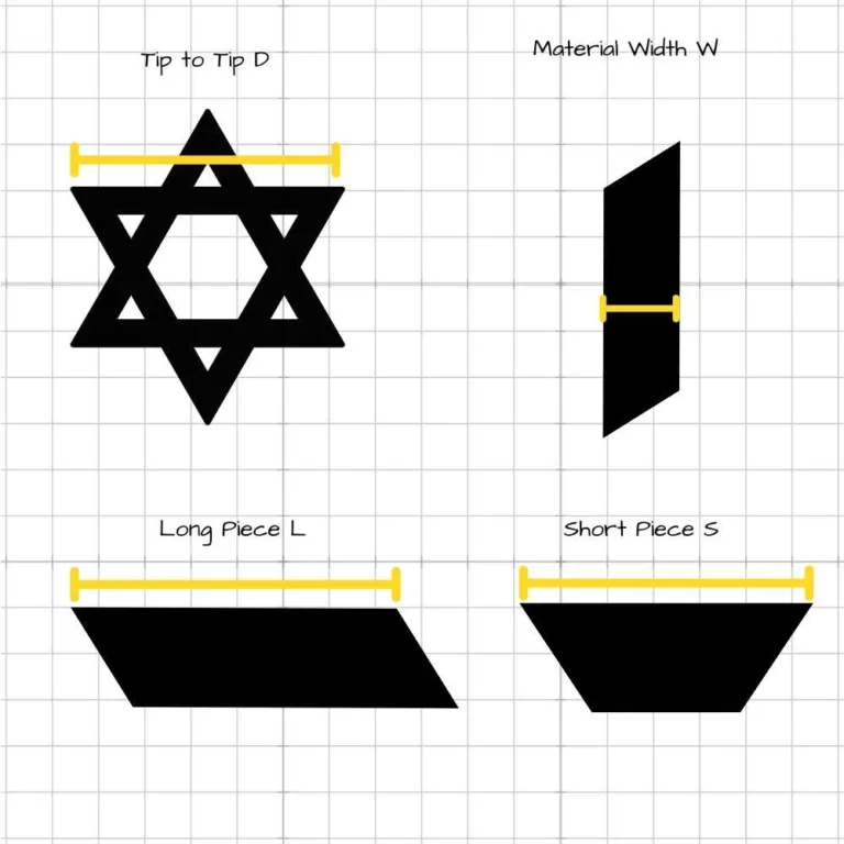Geometry: Offset = W / tan(60°), S = (L/2) − Offset, D = 2(L + Offset).